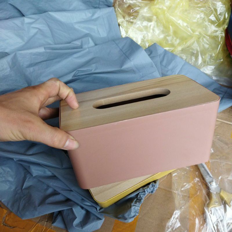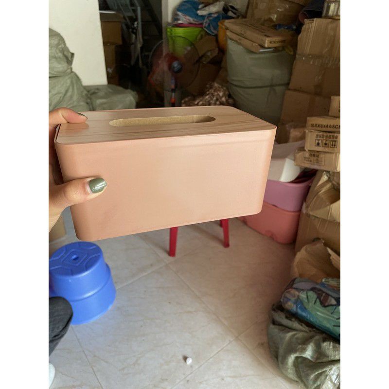 - Hộp đựng khăn giấy bằng nhựa chữ nhật nắp gỗ phù hợp sử dụng trong gia đình, khách sạn ...