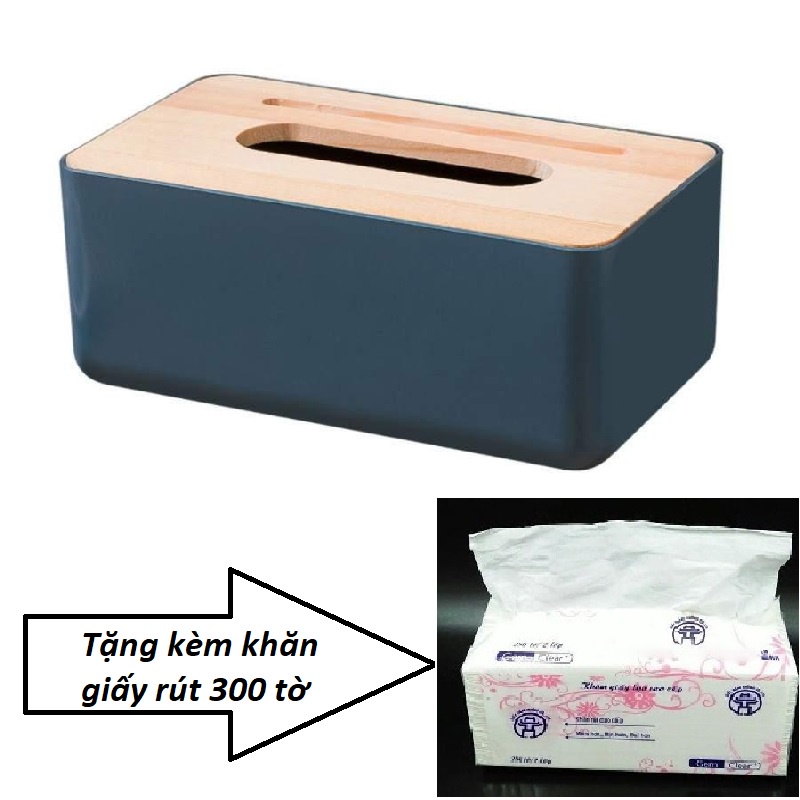 Hộp đựng khăn giấy nắp gỗ+ tặng kèm khăn giấy rút 300 tờ