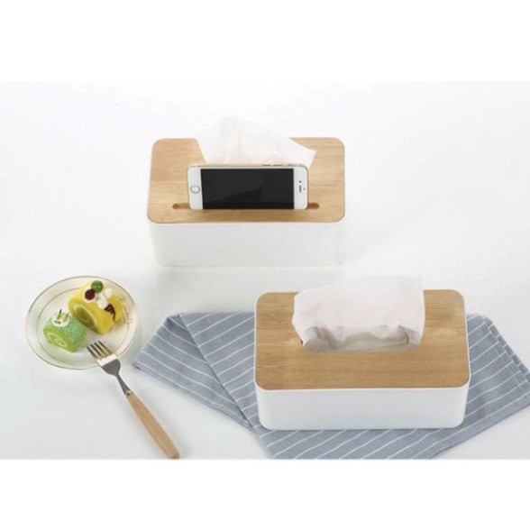Hộp đựng khăn giấy nắp gỗ tiện dụng | (LH3)