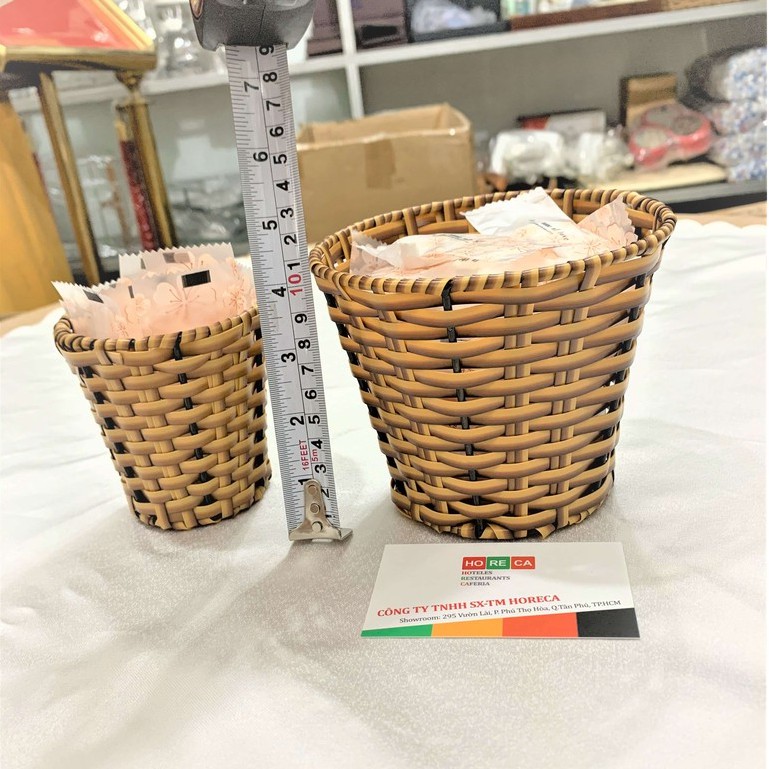 Hộp đựng khăn giấy, ly đựng khăn nhựa giả mây - dạng ly tròn hình tháp ngượcKích thước: