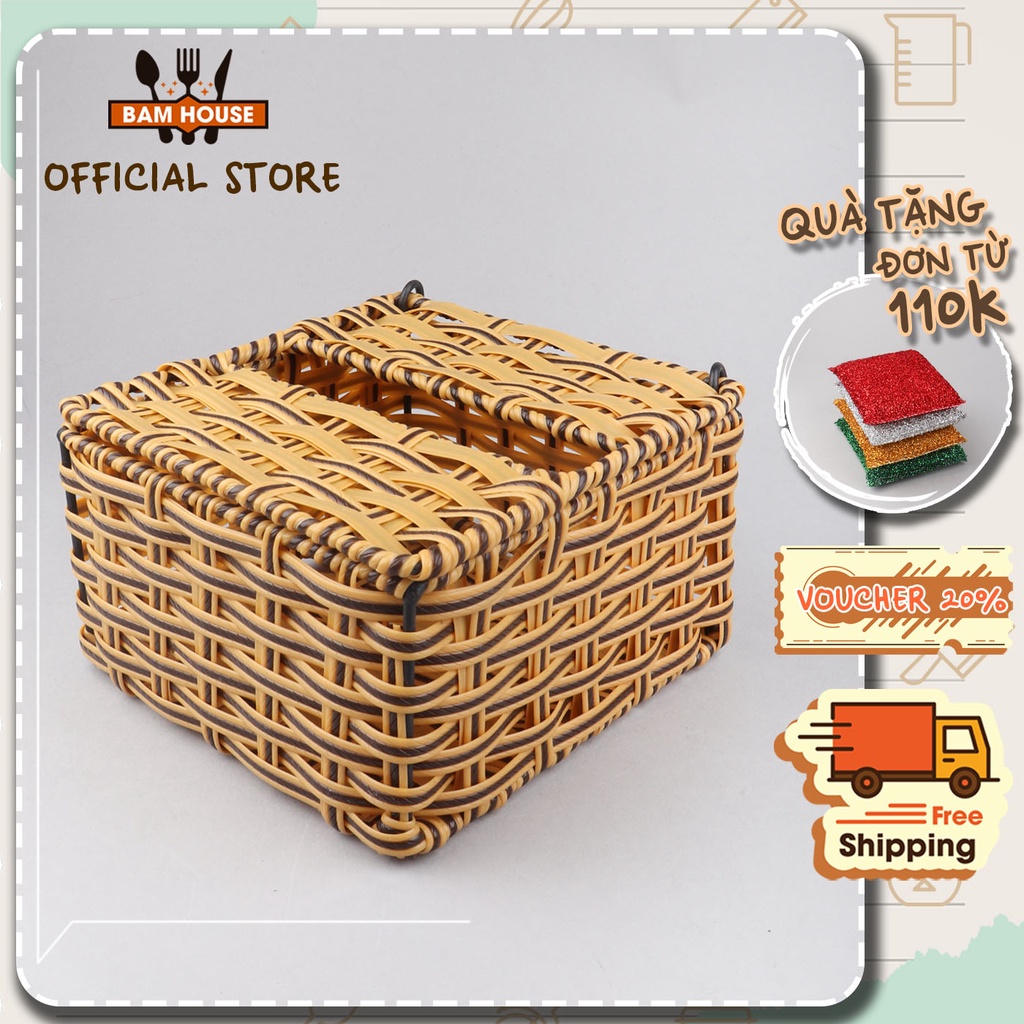 Hộp đựng khăn giấy nhựa mây Bam House dạng vuông cao cấp KI01 - Fuki24