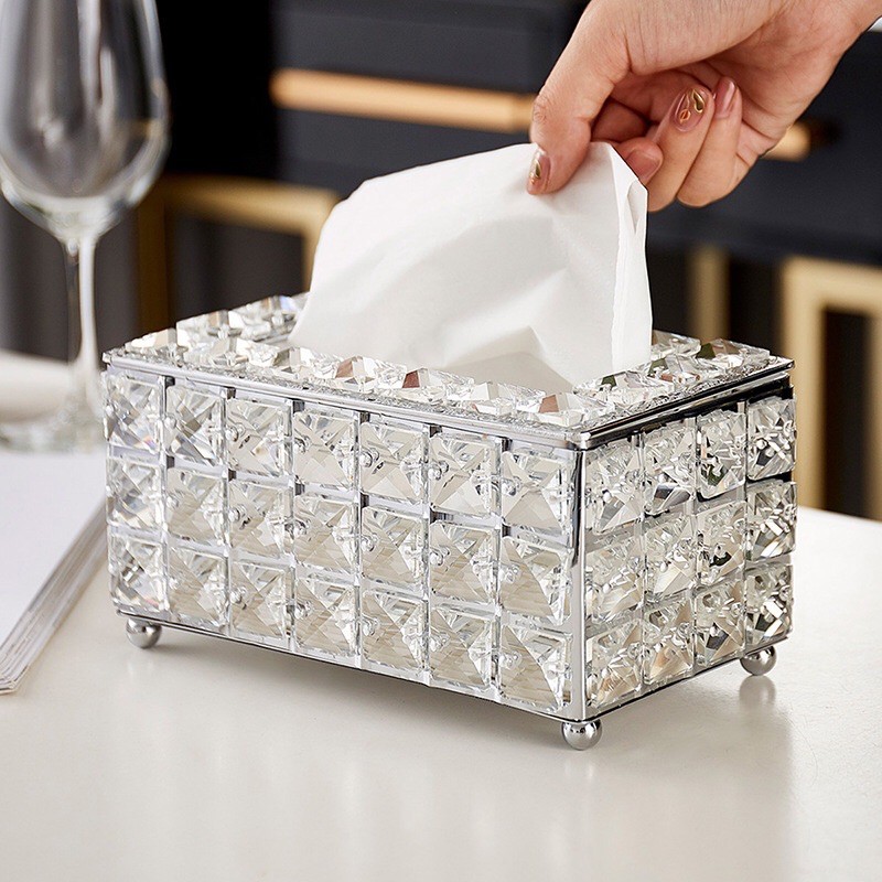 Nhà cửa & Đời sống > Sắp xếp nhà cửa > Hộp khăn giấy || Hộp đựng khăn giấy pha lê phong cách Luxury cao cấp trang trí nội thất, bàn phấn sang trọngCòn hàng