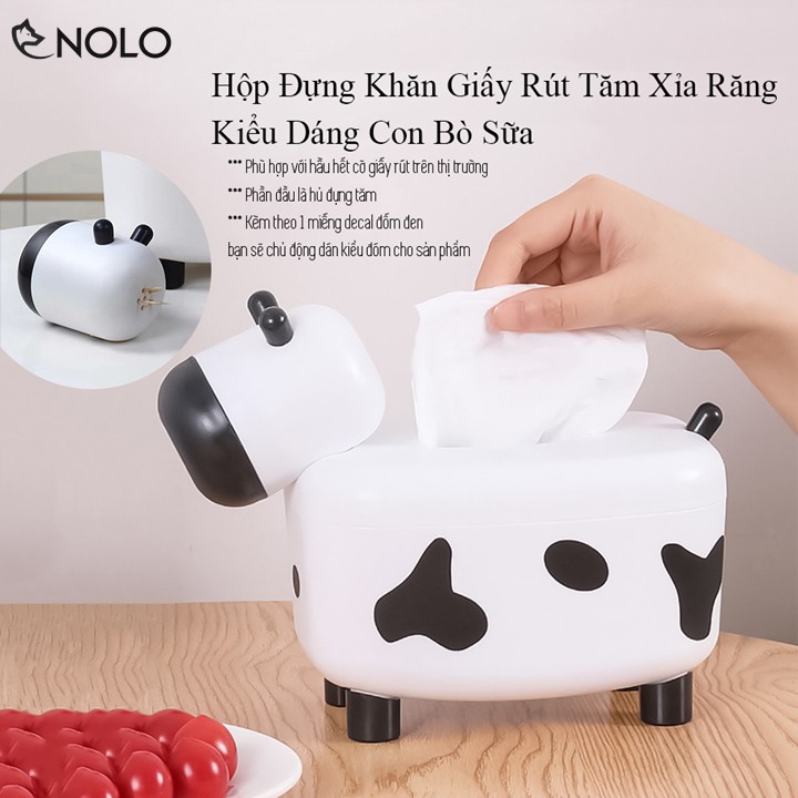 Hộp Đựng Khăn Giấy Rút Và Tăm Xỉa Răng Kiểu Bò Sữa Chất Liệu Nhựa PP Có Tặng Kèm Miếng Dán Đốm Bò