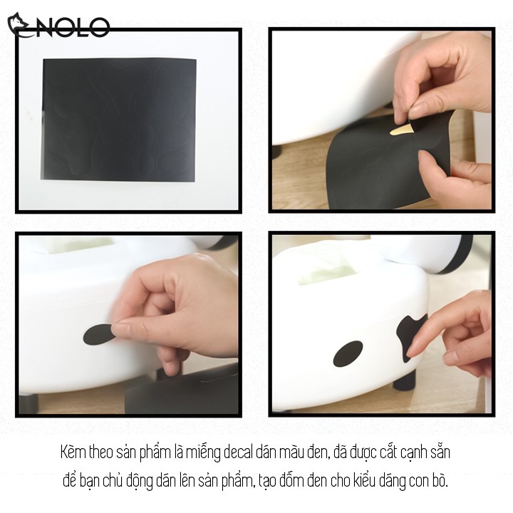 Kèm theo sản phẩm là miếng decal dán màu đen, đã được cắt cạnh sẵn để bạn chủ động dán lên sản phẩm, tạo đốm đen cho kiểu dáng con bò.