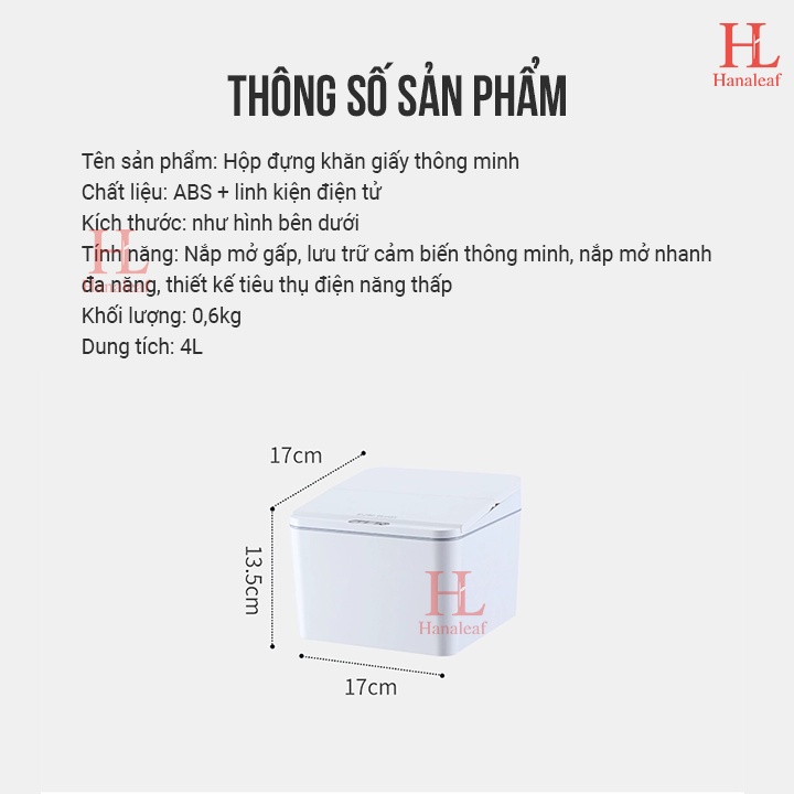 Hộp đựng khăn giấy thông minh đựng đồ dùng cá nhân dùng sạc cổng USB nhỏ gọn sang trọngHộp đừng đồ cá nhân, đựng rác, đựng khăn giấy đa năng cảm biến có thông số như sau: