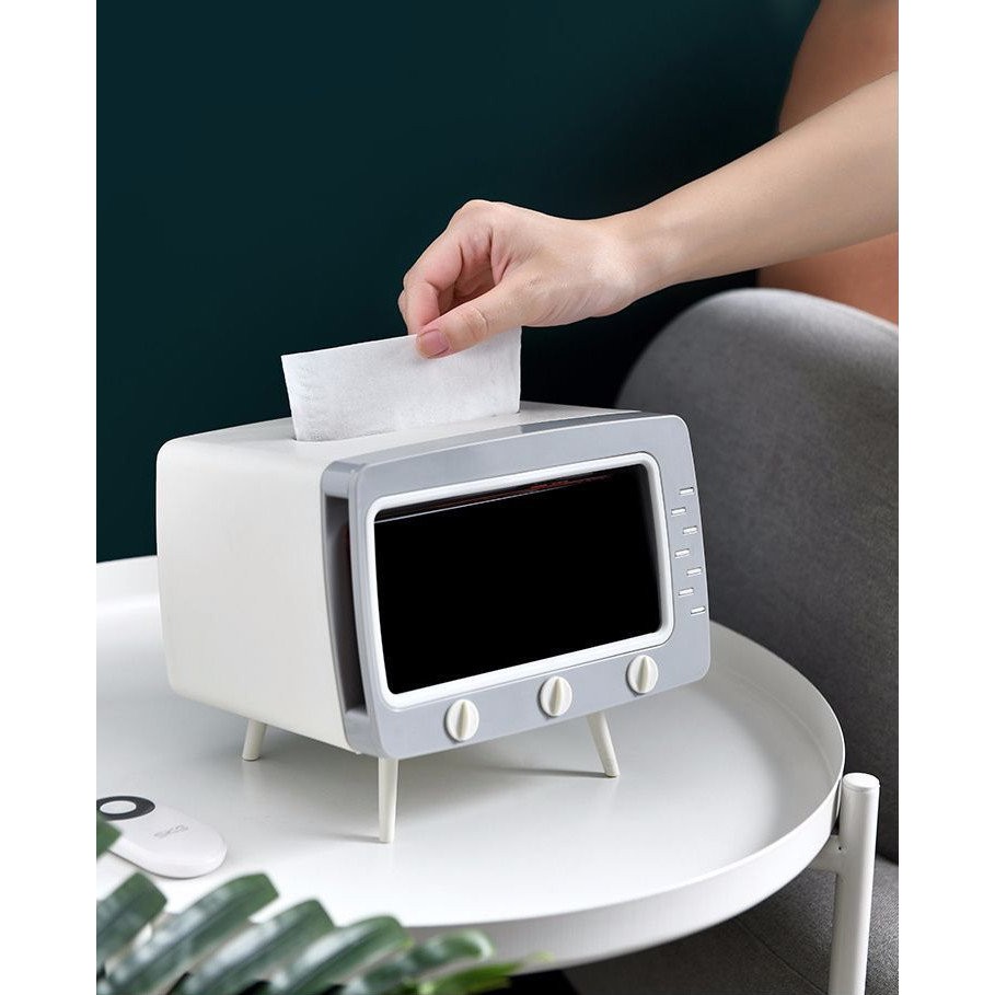 Hộp đựng khăn giấy tivi, kê để điện thoại 2in1 hộp đựng khăn giấy, hộp giấy ăn cao câp ABS