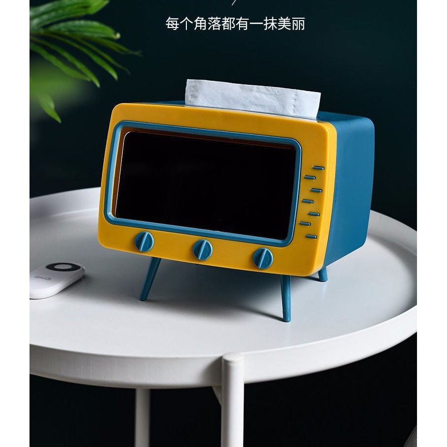 Hộp đựng khăn giấy tivi, kê để điện thoại 2in1- Chất liệu: Nhựa ABS