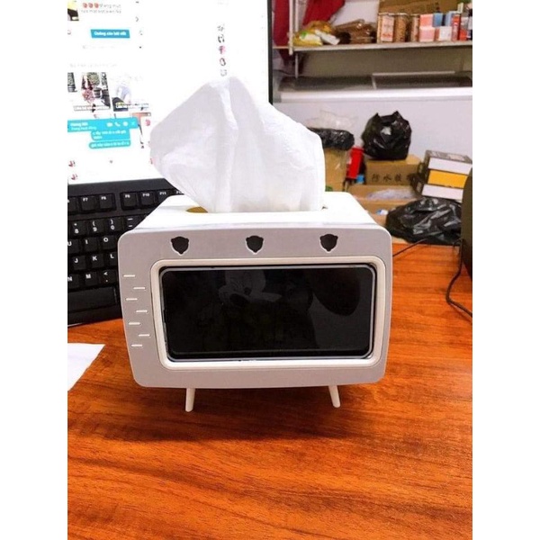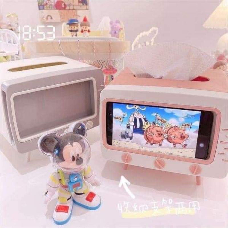❣️HỘP ĐỰNG GIẤY TIVI - KÊ ĐIỆN THOẠI🌈 Thiết kế đẹp độc lạ hình dáng như chiếc tivi ngày xưa, mặt trước có chỗ để màn hình điện thoại, bên trong lại là hộp giấy ăn vô cùng tiện dụng, đặt trên bàn ăn mỗi gia đình vừa xem video trên điện thoại vừa rút giấy ăn lau khi cần thiết. 👏👏