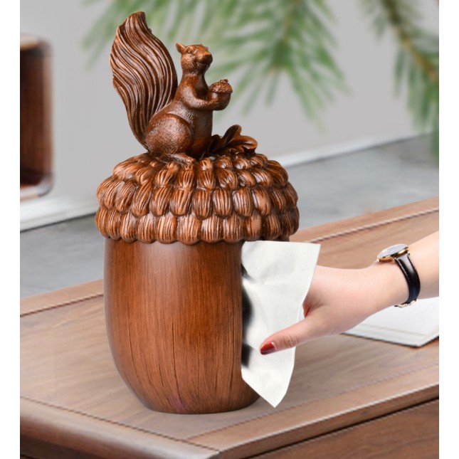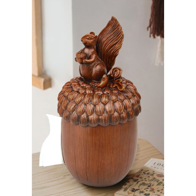 Hộp đựng giấy được thiết kế theo phong cách vintage với điểm nhấn phần thân hộp hình quả sồi, nắp hình chú sóc nghịch ngợm đáng yêu mang lại cho bạn cảm giác gần gũi hơn với thiên nhiên.