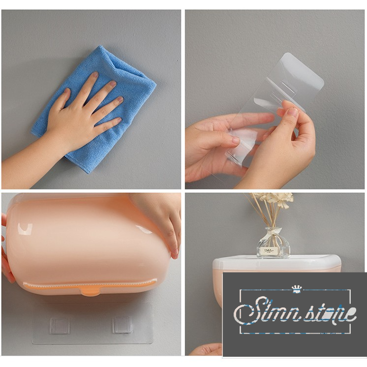 Hộp đựng khăn, giấy vệ sinh bằng nhựa ngăn bắn nước, hộp giấy vệ sinh dán tường siêu chắc chắn, tiện lợi. Slmn_HGVSDGian