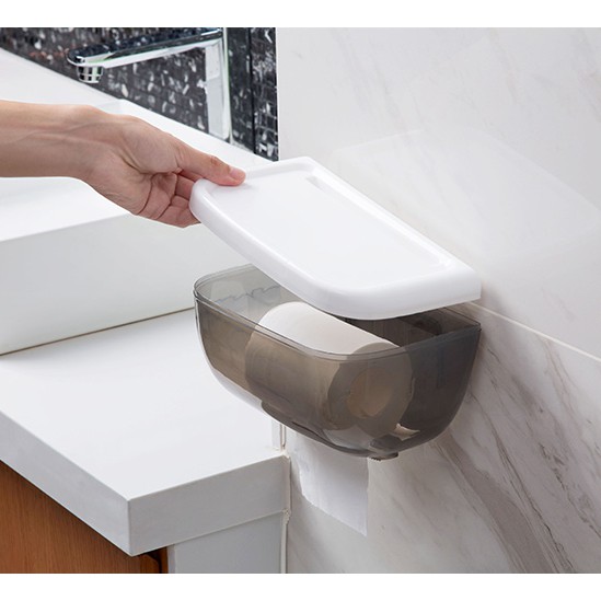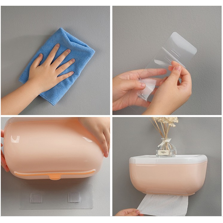 Hộp đựng khăn, giấy vệ sinh dán tường siêu chắc chắn, ngăn bắn nước