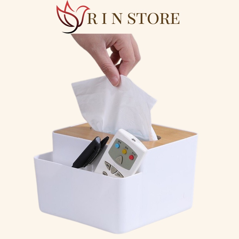 Hộp Đựng Khăn Giấy Vuông Nắp Gỗ Hộp Đựng Giấy Ăn Để Bàn Gồm 2 Ngăn Đựng Đồ Thông Minh