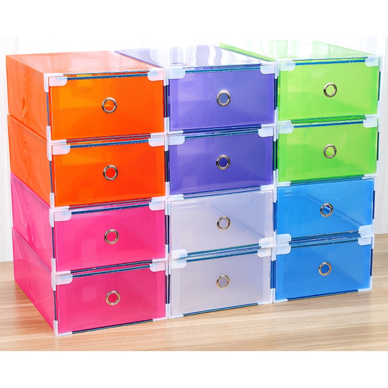 Hộp lưu trữ giày unisex. Với chất liệu nhựa cao cấp và khung thép không gỉ, hộp đựng giày trở nên chắc chắn hơn, sang trọng hơn và bảo quản giày tốt hơn. Kích thước : 30*18*10 cmHộp lưu trữ giày unisex