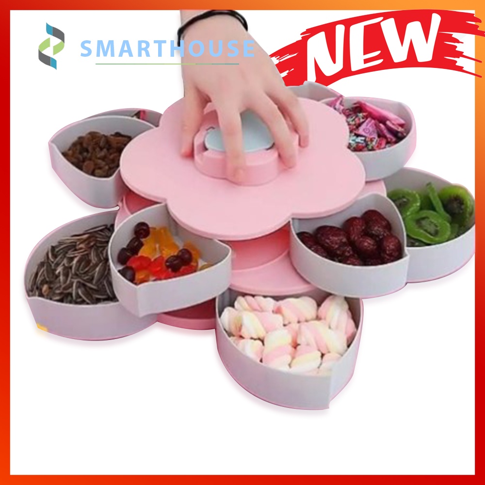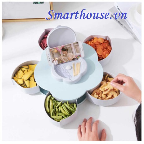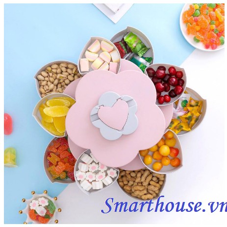 *Khay Đựng Bánh Mứt Để Bàn 2 Tầng 10 Cánh Hoa Có Kèm Giá Để Điện Thoại Thông MinhKhay đựng mứt xoay hình cánh hoa là sản phẩm không thể thiếu trong những ngày đầu xuân, nó không chỉ là khay đựng thông thường mà nó còn là một món quà, đồ trang trí tuyệt đẹp.