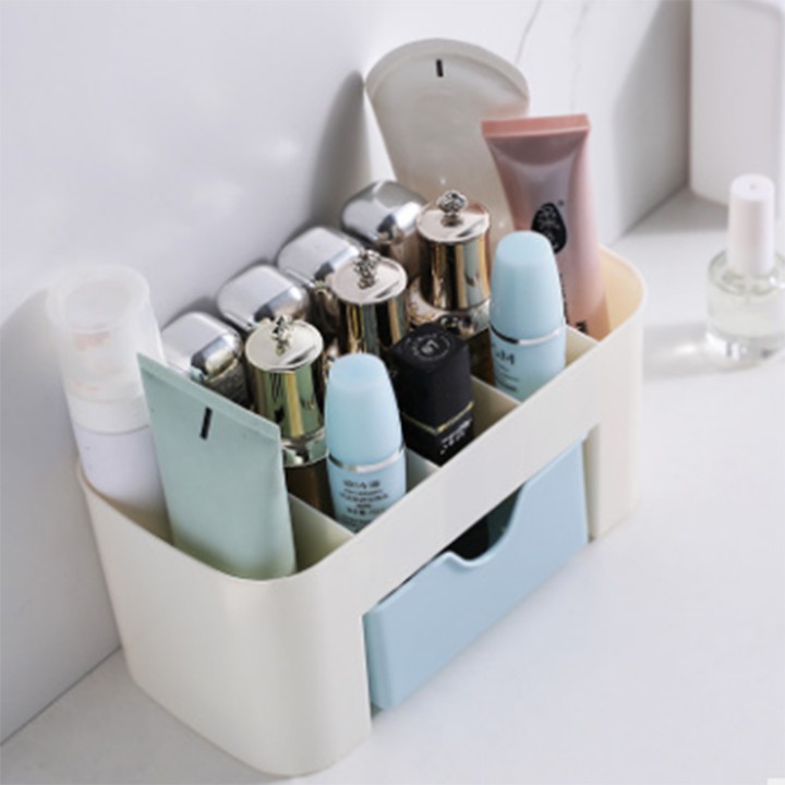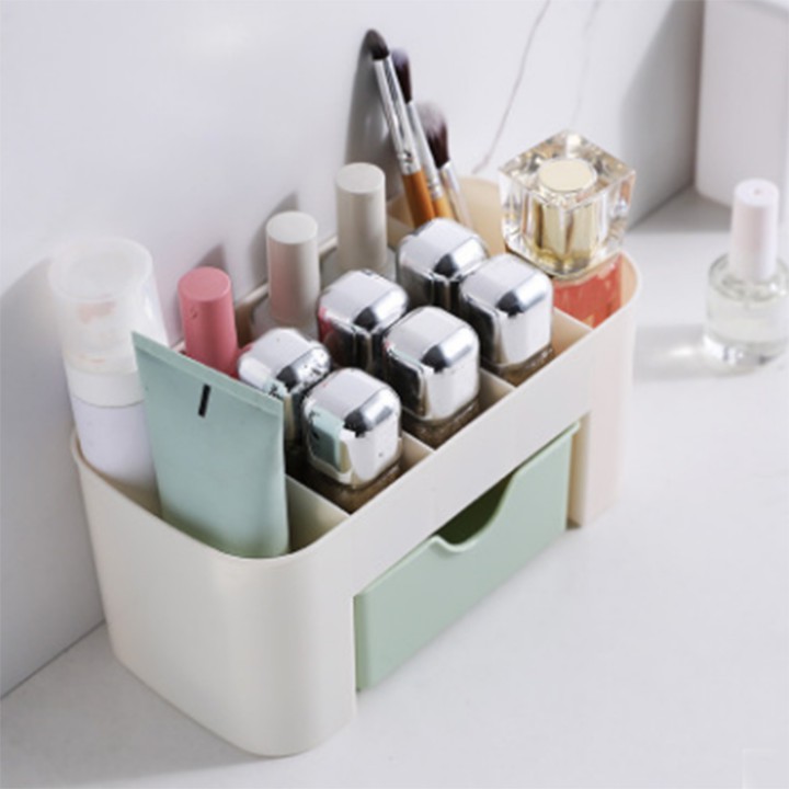 Hộp đựng mỹ phẩm 2 tầng có ngăn kéo để bàn bằng nhựa bền đẹp nhỏ gọn tiết kiệm không gian bàn trang điểm phòng ngủ