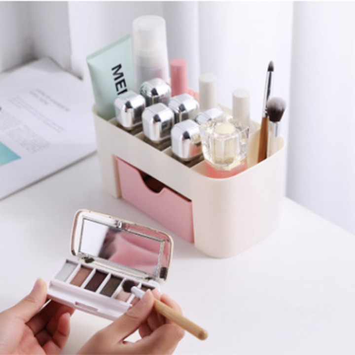 • Hộp nhựa đựng mỹ phẩm có ngăn kéo tiện dụng, xinh xắn giúp chị em sắp xếp các vật dụng cá nhân một cách gọn gàng, ngăn nắp tránh thất lạc & dễ dàng tìm kiếm khi cần.