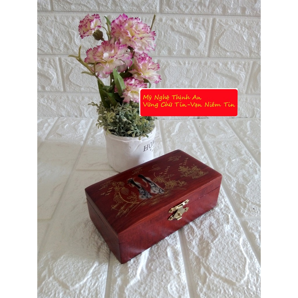 Nhà cửa & Đời sống > Đồ dùng phòng tắm > Kệ đựng xà phòng || Hộp đựng nữ trang gỗ hương khảm xà cừ 3 tấc TS3TCòn hàng