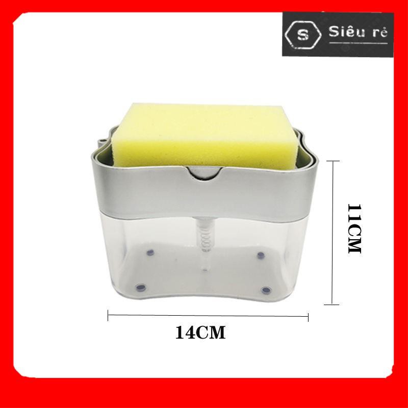 Hộp đựng nước rửa bát chén, ấn lấy xà phòng thông minh-Hộp đựng nước rửa chén ấn kèm miếng rửa (LA2533)