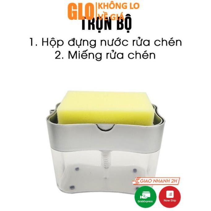 Hộp Đựng Nước Rửa Chén Bát Đa Năng, Tiện Lợi Có Vòi Hút (Màu Bạc), Tặng Kèm Miếng Rửa Chén