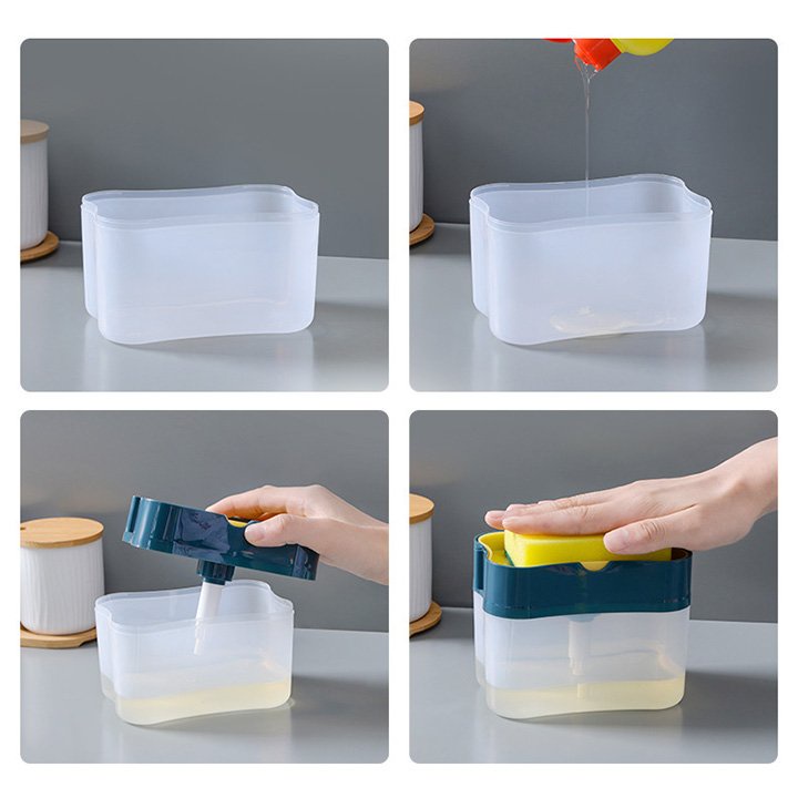 Hộp đựng nước rửa chén bát thông minh đa năng có vòi bơm bình kèm miếng bọt biển