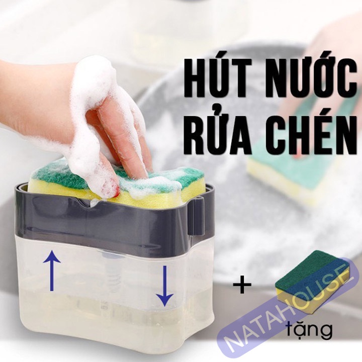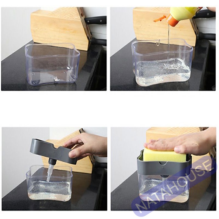 Giới thiệu Hộp Đựng Nước Rửa Chén Bát Thông Minh 2in1 (Tặng Kèm Miếng Rửa Chén) - NATAHOUSE