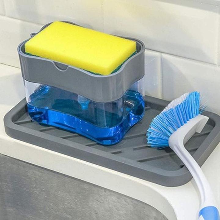 Bộ sản phẩm bao gồm: 1 hộp 2 ngăn để đựng nước rửa chén và đựng miếng rửa chén