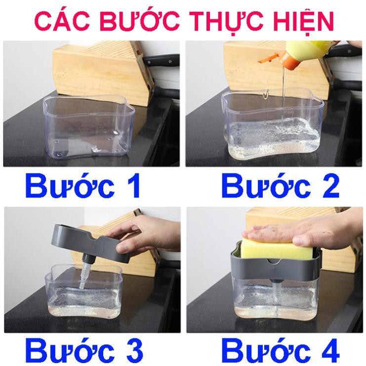 Hộp Đựng Nước Rửa Chén Tự Động Tạo Bọt 2 in 1 Tiện Lợi, Hộp Đựng Nước Rửa Chén Tạo Bọt Tặng Kèm Miếng Bọt Biển