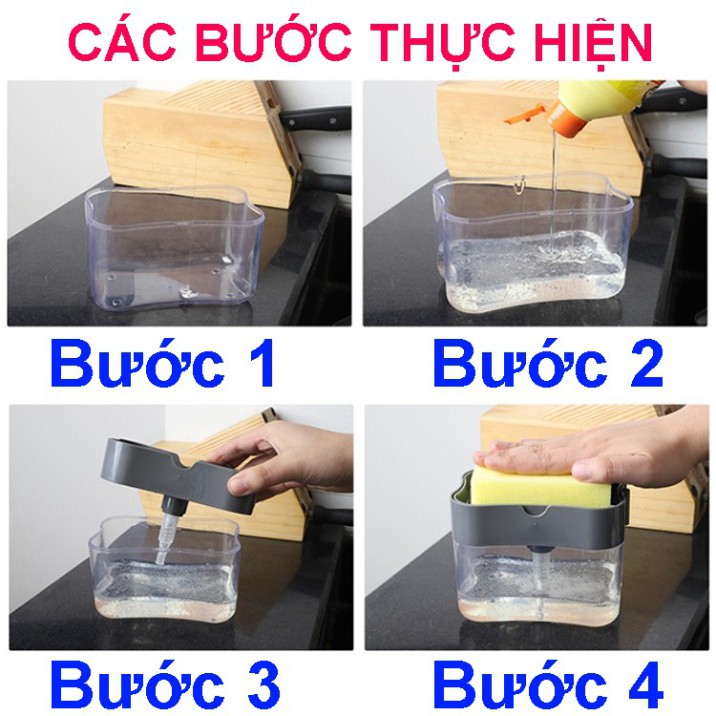 - Hộp Đựng Nước Rửa Chén Tự Động Tạo Bọt 2 in 1 giúp làm sạch chén đĩa nhanh hơn rất nhiều so với bơm xà phòng bằng chai và gói