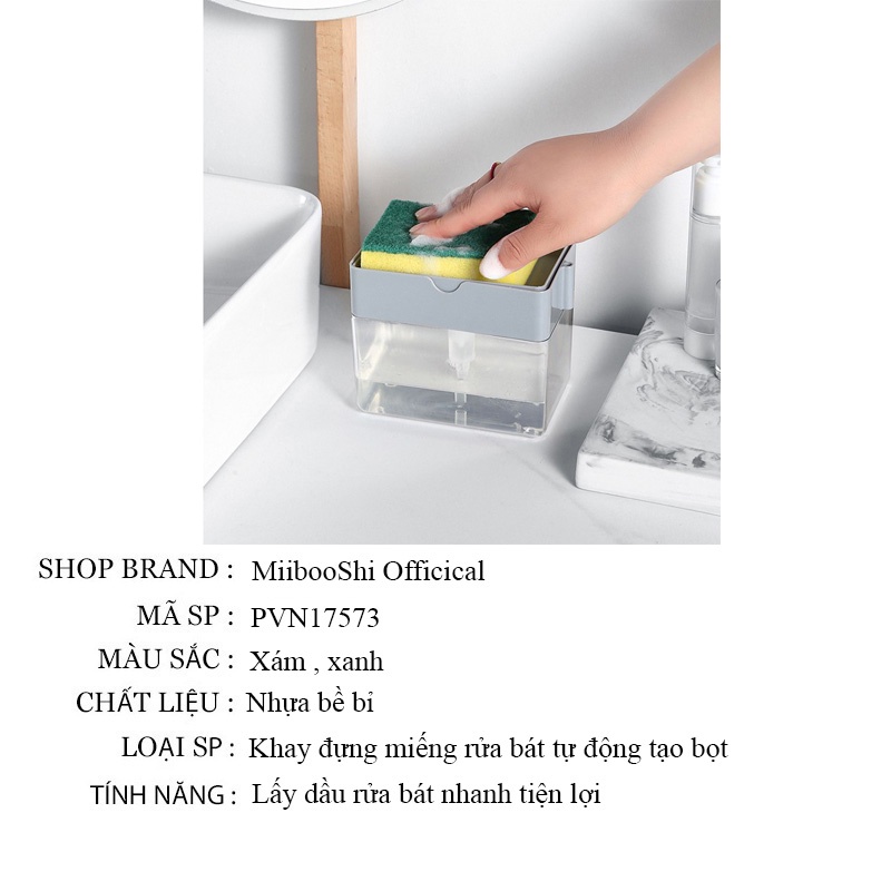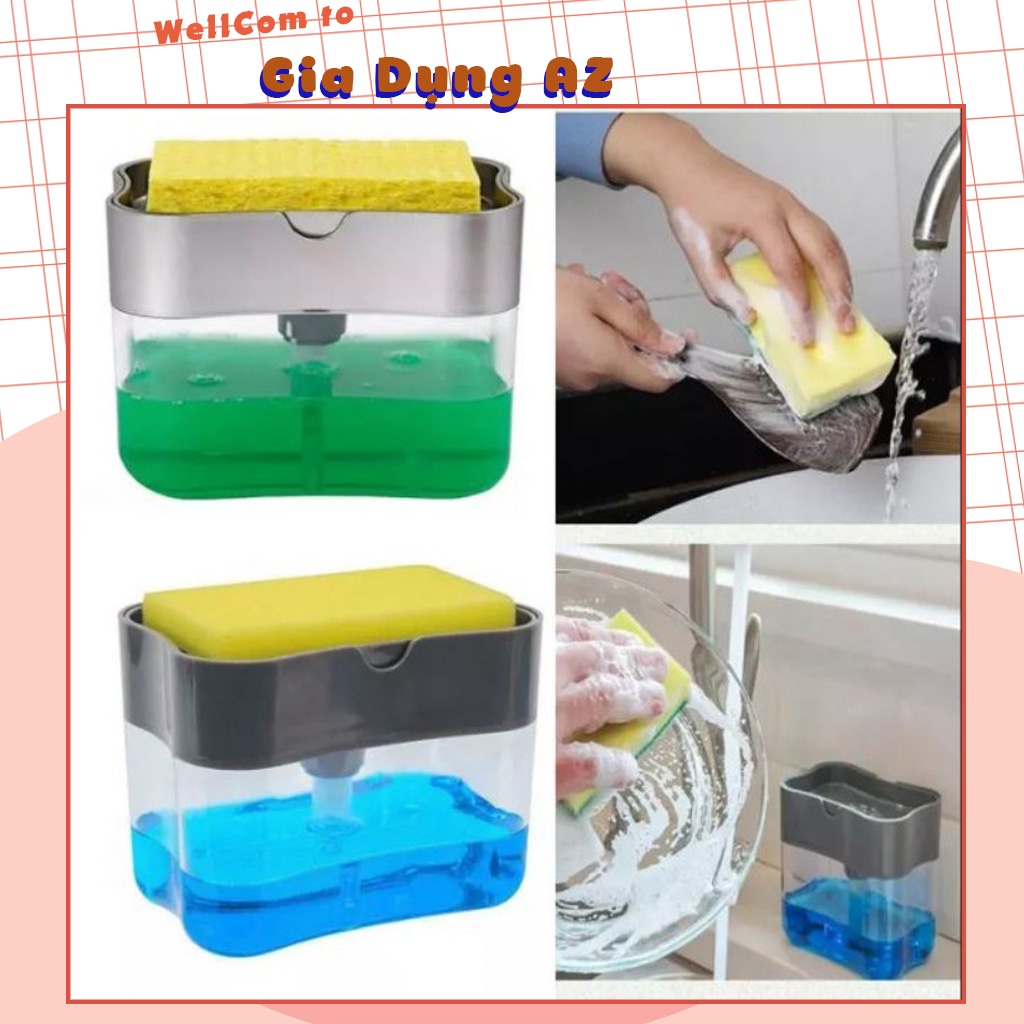 Hộp đựng nước rửa chén tự động bơm dầu lên khi nhấn xuống tạo bọt nhanh tiện lợi tặng kèm miếng rửa bát AZPVN17573