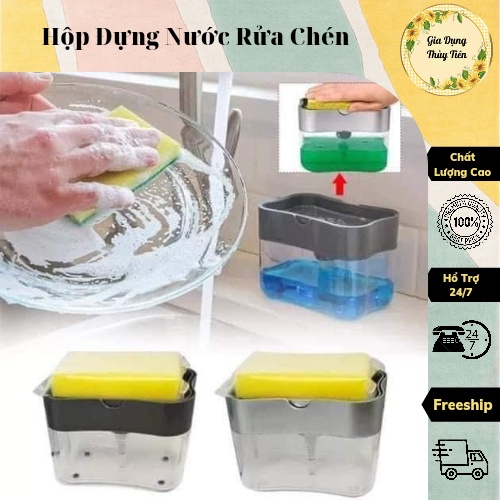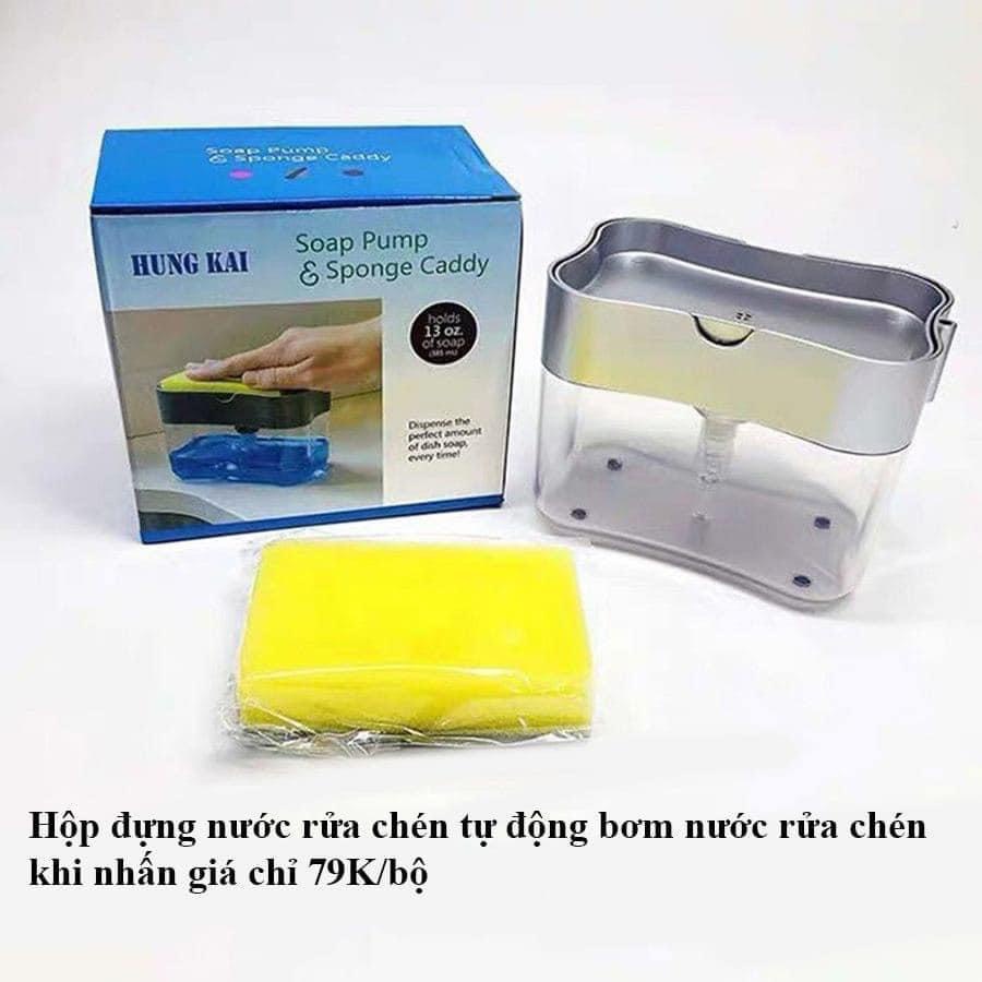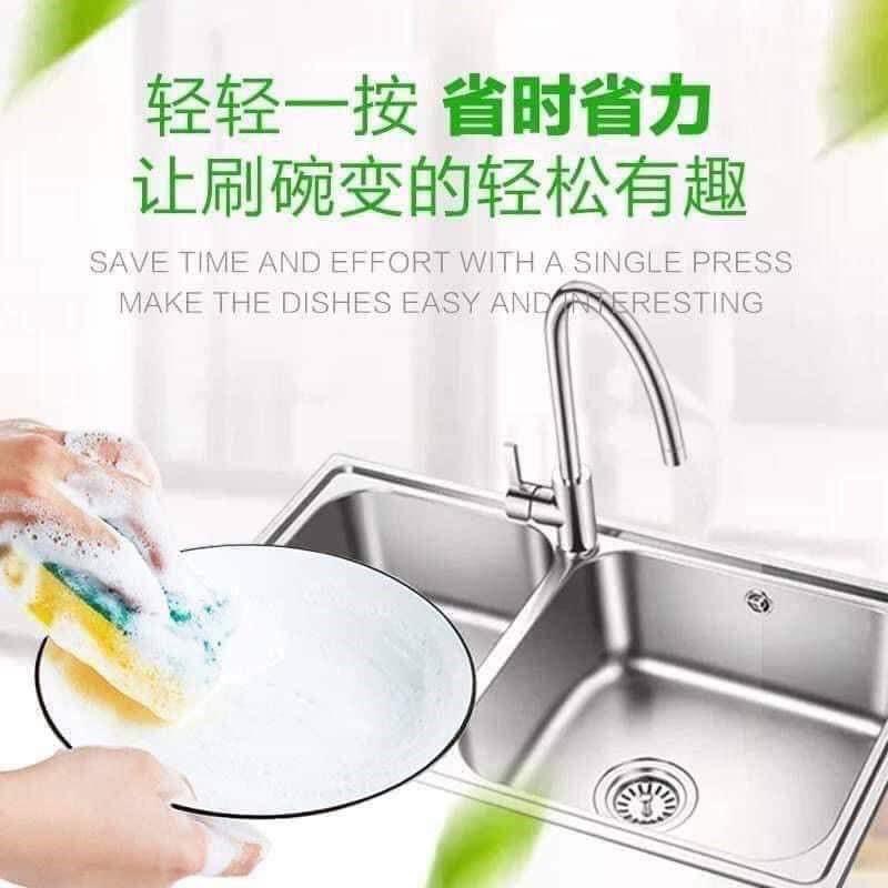 - Hộp Đựng Nước Rửa Chén Tự Động Tạo Bọt 2 in 1 giúp làm sạch chén đĩa nhanh hơn rất nhiều so với bơm xà phòng bằng chai và gói