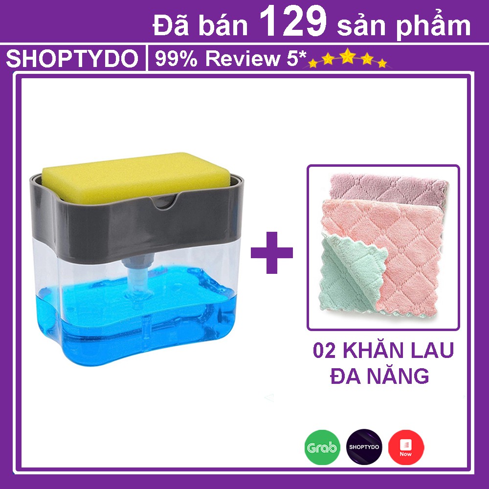 Hộp Đựng Nước Rửa Chén Tự Động Tạo Bọt 2 in 1 Thông Minh Tiện Lợi Kèm Miếng Bọt Biển và 2 Khăn Lau Đa Năng Cao Cấp