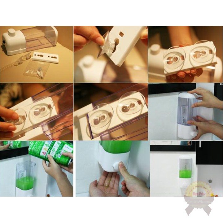 Giới thiệu Hộp đựng nước rửa tay sữa tắm dầu gội 500ml có nút nhấn treo gắn tường mút chân không