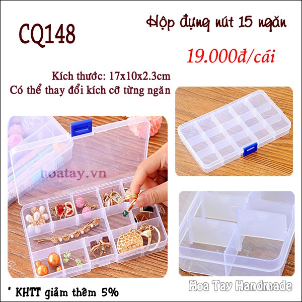 Sở thích & Sưu tầm > Dụng Cụ May Vá || Hộp đựng nút, phụ kiện, hộp nhựa 15 ngăn có thể thay đổi kích cỡ từng ngăn CQ148Còn hàng