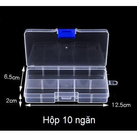 - Hộp 10 ngăn: 12.5 x 6.5 x 2cm