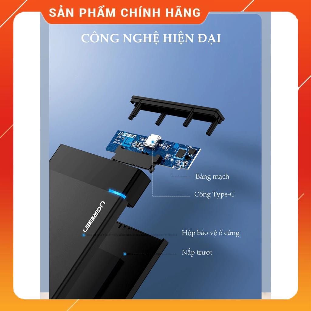 - Hộp đựng ổ cứng SATA cổng USB-C 3.1 cao cấp Ugreen 50743 là thiết bị giúp bảo vệ và kết nối ổ cứng HDD, SSD của bạn với laptop, máy tính... biến ổ cứng thường thành ổ cứng di động tiện lợi. HDD Box Ugreen 50743 hỗ trợ giao thức UASP với tốc độ truyền tải tối đa lên đến 6Gbps , Nhanh hơn 70% so với USB 3.0 truyền thống, tương thích ngược với cổng USB 2.0 và USB 1.1. Ngoài ra hộp đựng ổ cứng Ugreen còn tích hợp công nghệ thông minh Sau 3 phút không hoạt động, thiết bị sẽ tự động chuyển sang chế độ nghỉ, có thể rất tiết kiệm điện năng và giảm hao mòn ổ cứng của bạn.- Box ổ cứng USB-C 3.1 chính hãng Ugreen 50743 dùng cho ổ cứng HDD, SSD 2.5" chuẩn SATA III và tương thích ngược với SATA II, hỗ trợ Plug And Play (cắm là nhận) tương thích với hầu hết hệ điều hành Windows 7/8/8.1/10/Vista/XP, Linux, Mac OS... HDD Box Ugreen là giải pháp di động tuyệt vời không thể thiếu trong bộ sưu tập phụ kiện của bạn.