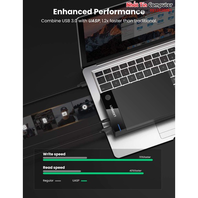 Hỗ trợ USB 3.0 tốc độ truyền dữ liệu lên đến 5Gbps kết nối hỗ trợ UASP , nhanh hơn USB 2.0 tới 10 lần, và 70% nhanh hơn và tiêu chuẩn sử dụng CPU USB 3.0 ít 80% để kết nối với máy chủ máy tính có sẵn UASP.