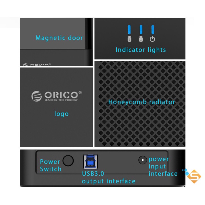 Hộp Đựng Ổ Cứng 5 Khe 2 Khe ORICO 3.5" SATA 3 USB 3.0 Type B DS200U3 DS500U3 Hot-SwapThương hiệu:Orico