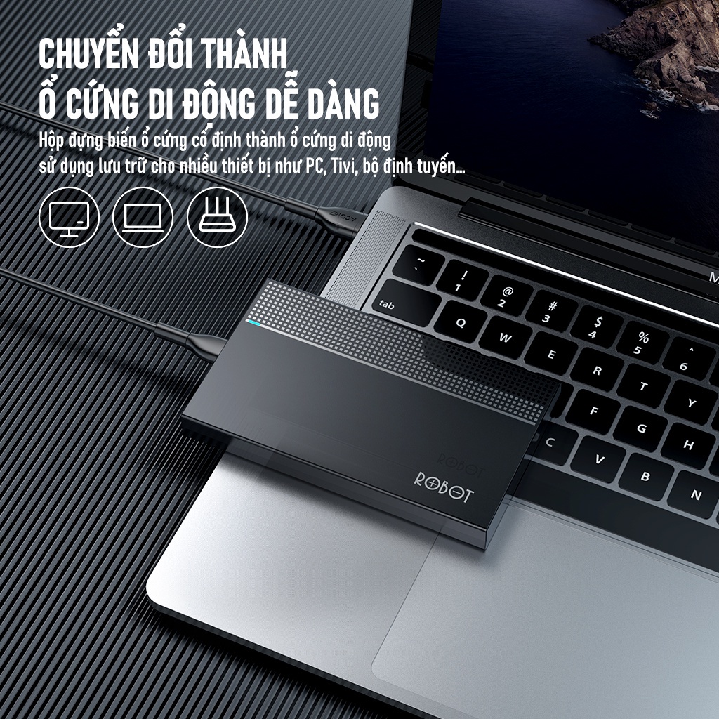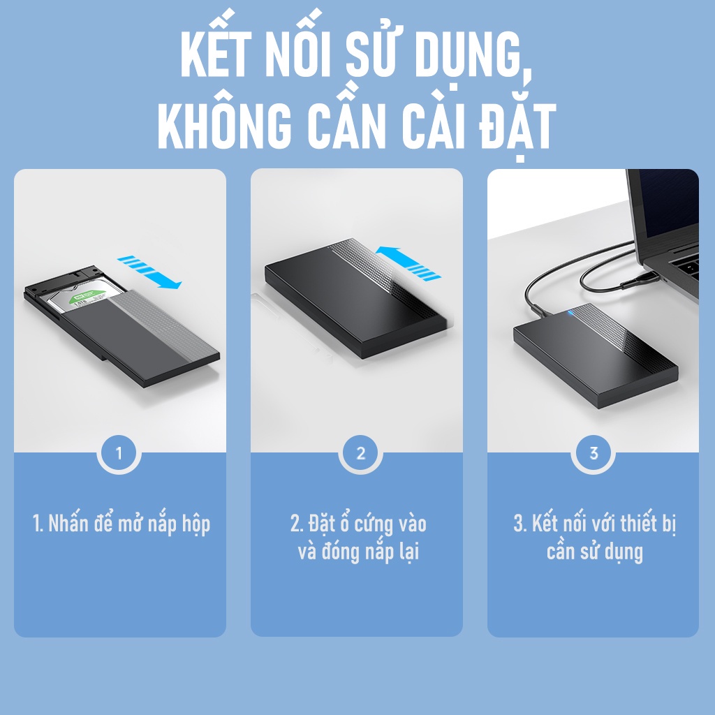 - Hộp đựng biến ổ cứng cố định thành ổ cứng di động, sử dụng lưu trữ mở rộng cho nhiều thiết bị như PC, TV, bộ định tuyến,..