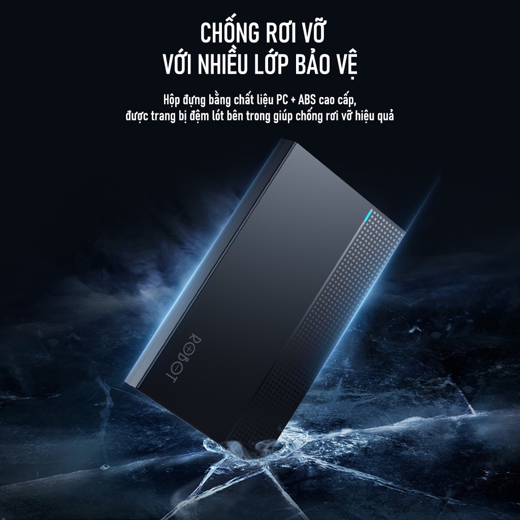 - Hộp đựng bằng chất liệu PC + ABS đàn hồi cao cấp được trang bị đệm lót bên trong giúp chống rung, chống va đập khi rơi.
