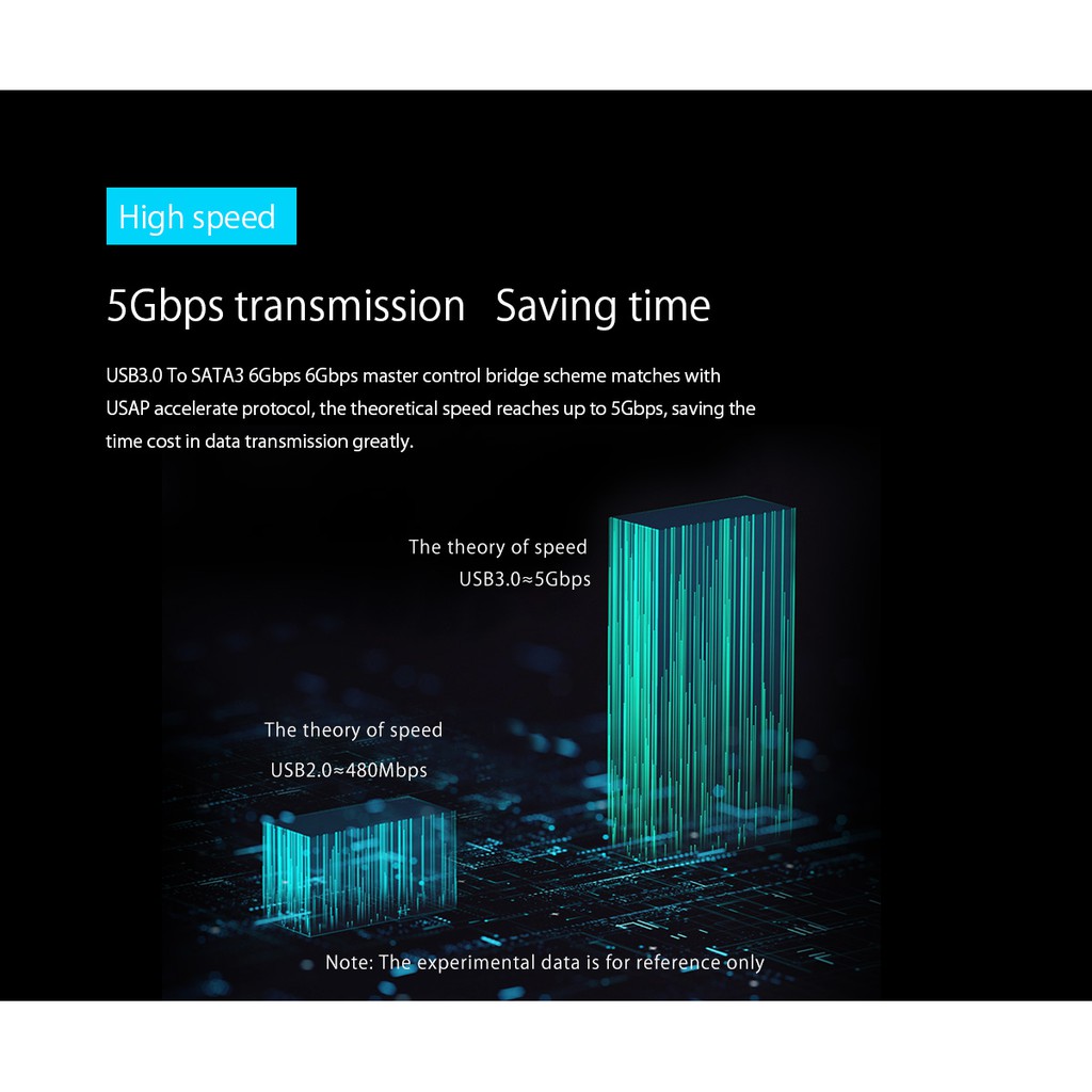 Khay Orico 3.5'' USB 3.0 DS500U3 trang bị chuẩn USB 3.0, tốc độ truyền dữ liệu 5Gbps. Ngoài ra còn hỗ trợ UASP tăng tốc đồ truyền dữ liệu 20%.