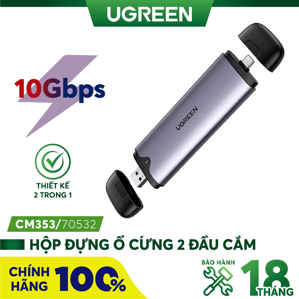 Máy tính & Laptop > Thiết Bị Lưu Trữ > Ổ Cứng SSD || Hộp đựng ổ cứng M.2 NVME/ PCIe, chân cắm USB-C và USB 3.1, tốc độ lên đến 10Gbps UGREEN CM353 70532Còn hàng