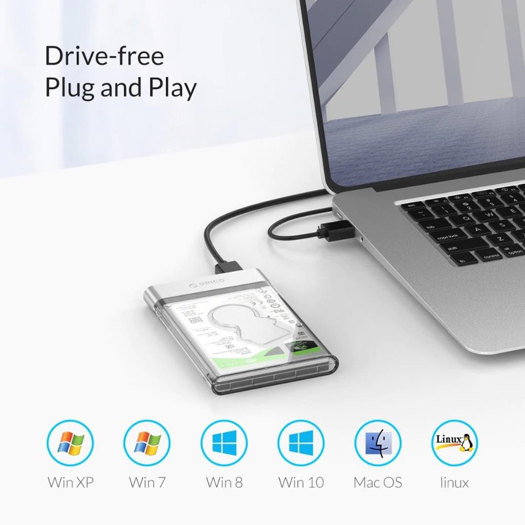 Hộp đựng ổ cứng ORICO 2129U3 2.5 inch Trong Suốt USB3.0 2.5"Sata 3.0 HDD Đầu cắm bọc hợp kim nhôm tản nhiệt tốt - Hàng phân phối chính thứcHộp đựng ổ cứng ORICO 2129U3 tương thích với ổ cứng 2.5 inch HDD / SSD, dung lượng hỗ trợ tối đa 2TB. Hoạt động tốt trên tất cả các hệ điều hành hiện nay.