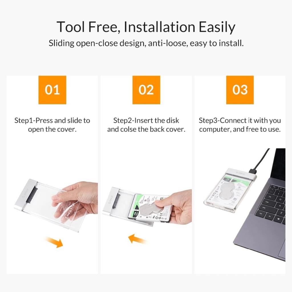 💥 Tên sản phẩm:Hộp đựng ổ cứng ORICO 2129U3 2.5 inch Trong Suốt USB3.0 2.5"Sata 3.0 HDD Đầu cắm bọc hợp kim nhôm tản nhiệt tốt- dc3742