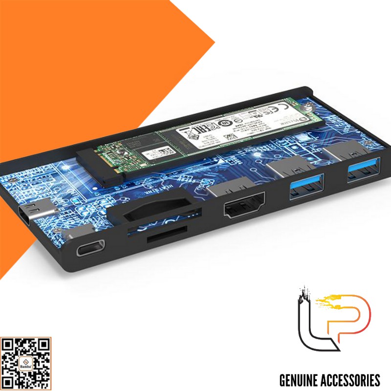 HỘP ĐỰNG Ổ CỨNG SSD M2 NGFF - Box Ssd M2(NGFF)+2 USB 3.0+HDMI+ 2 KHE ĐỌC THẺ +USB TYPE-C Ra USB TYPE-C BAMBA B7