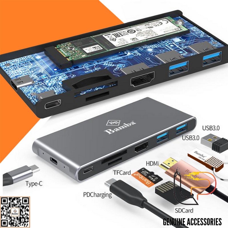 Máy tính & Laptop > Thiết Bị Lưu Trữ > Thiết Bị Đựng Ổ Cứng || HỘP ĐỰNG Ổ CỨNG SSD M2 NGFF - Box Ssd M2(NGFF)+2 USB 3.0+HDMI+ 2 KHE ĐỌC THẺ +USB TYPE-C Ra USB TYPE-C BAMBA B7Còn hàng
