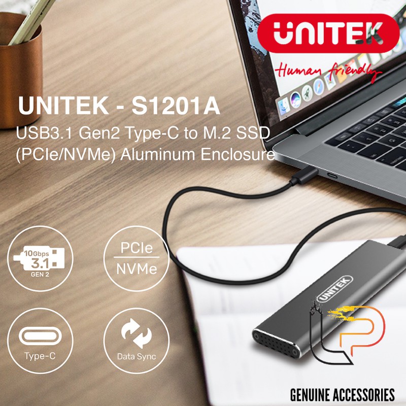 HỘP ĐỰNG Ổ CỨNG SSD TYPE-C UNITEK S1210A - BOX GẮN Ổ CỨNG SSD TYPE C RA M.2 PCIE/NVME UNITEK (S1201A)