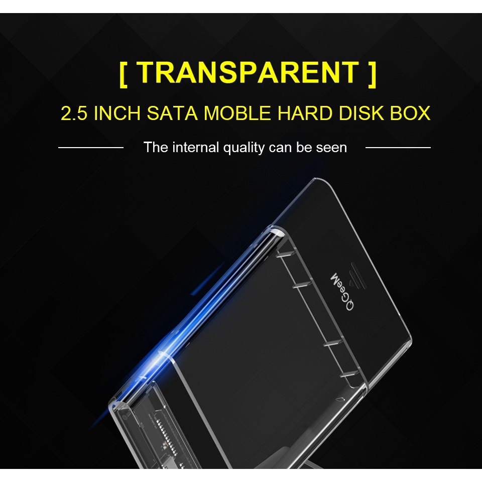 Giới thiệu Hộp đựng ổ cứng trong suốt HDD/SSD 2.5" QGeeM Type C to SATA I II III tốc độ cao lên tới 6Gbps kèm cáp Type C to USB-A