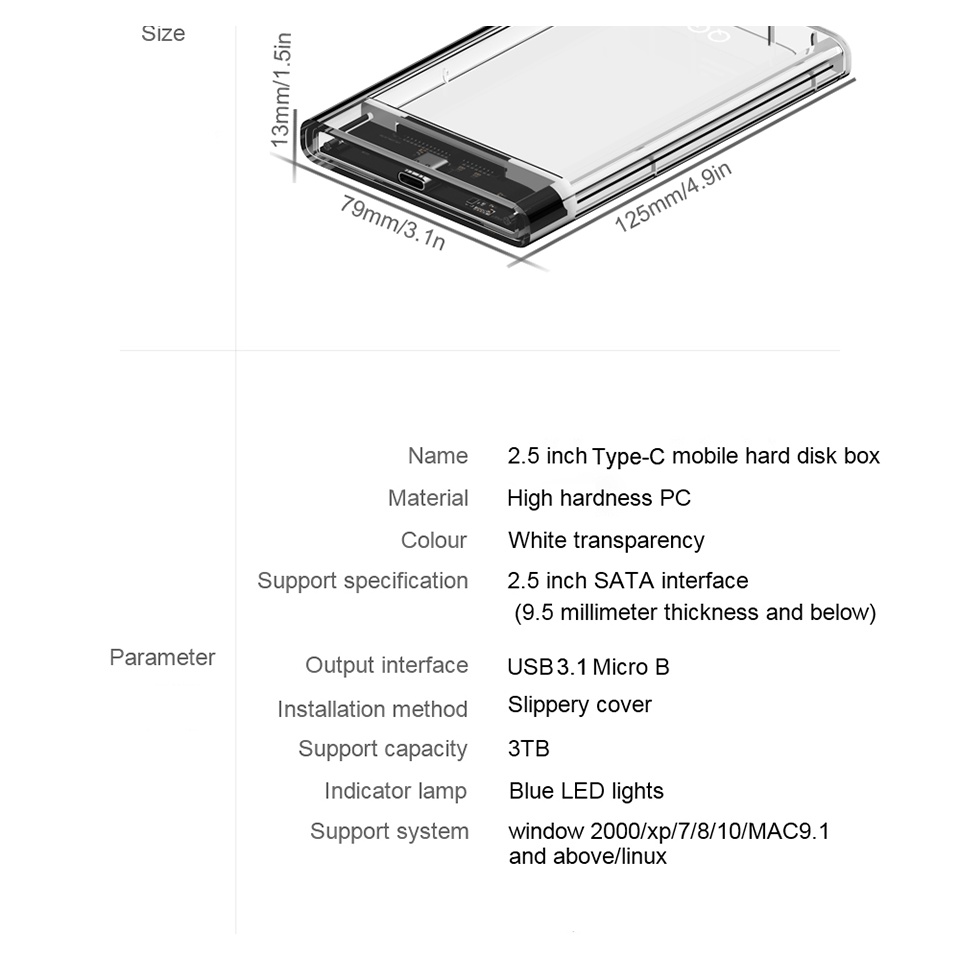 Khả năng tương thích: hộp đựng HDD hỗ trợ Windows, LINUX, Mac OS 8.0 trở lên.