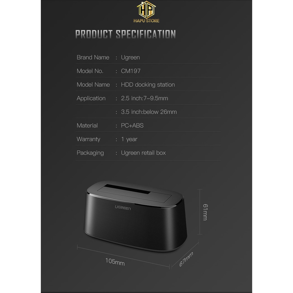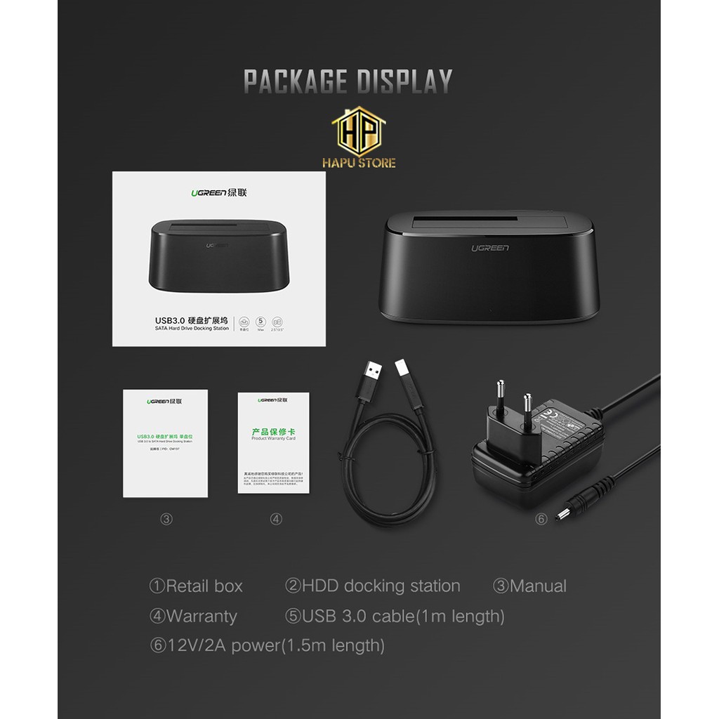 ◇ Docking 2.5/3.5inch Sata/ USB 3.0 hỗ trợ 12TB chính hãng Ugreen 50740 cao cấp