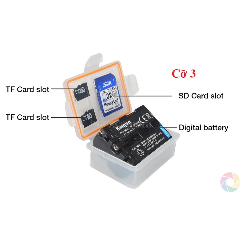 Đựng được: 1 Pin + 1 Thẻ SD + 2 Thẻ Micro SD